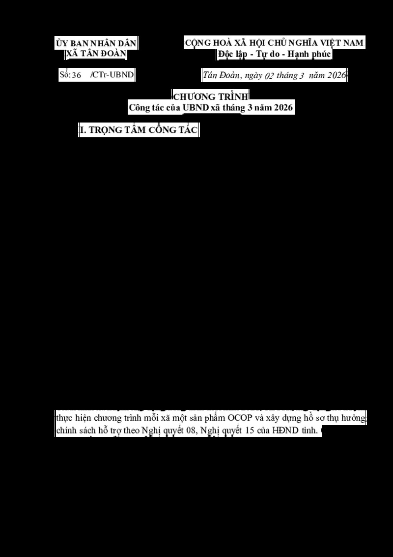 | Tiêu đề văn bản | Chương trình công tác của UBDN xã tháng 3 năm 2026 | ||