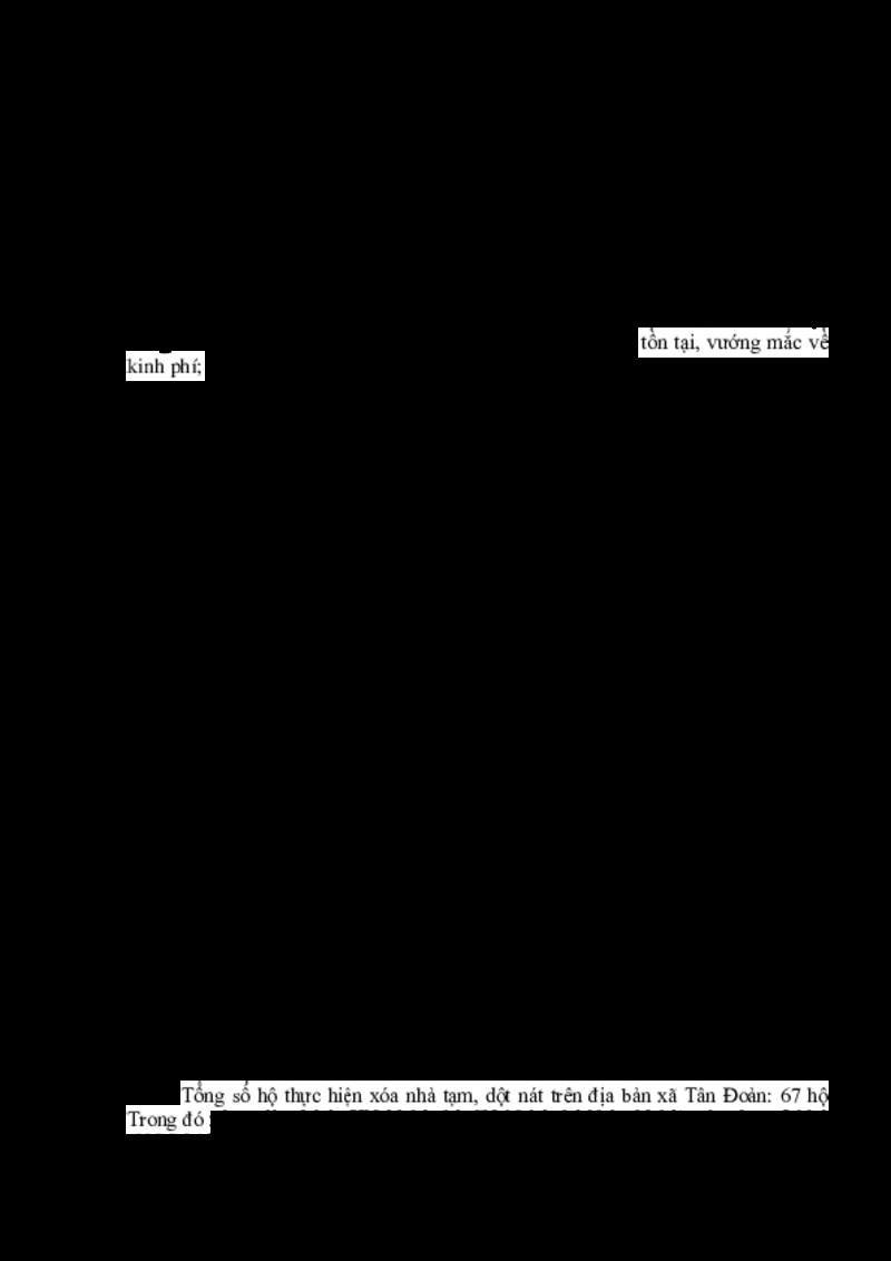 | Tiêu đề văn bản | Báo cáo Kết quả Rà soát, đề xuất xử lý kinh phí thực hiện hỗ trợ nhà ở Chương trình xóa nhà tạm, nhà dột nát trên địa bàn xã Tân Đoàn năm 2025 | ||