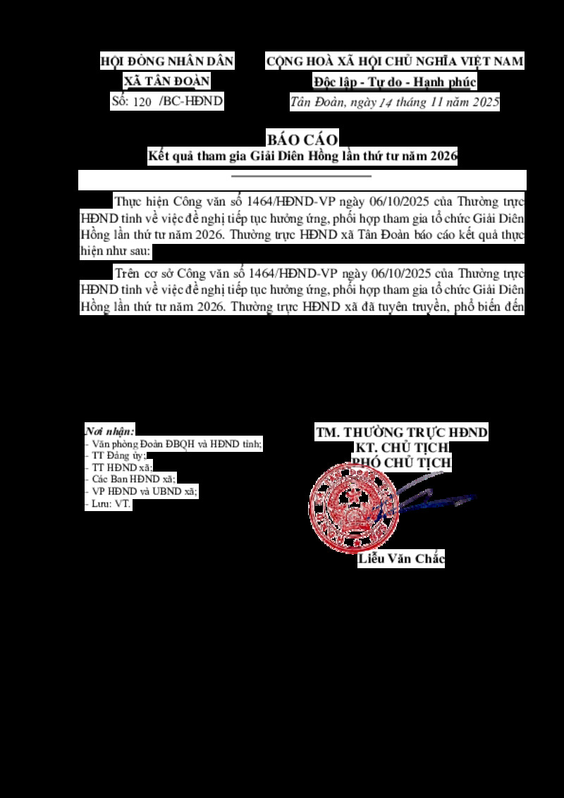 | Tiêu đề văn bản | BÁO CÁO Kết quả tham gia Giải Diên Hồng lần thứ tư năm 2026 | ||