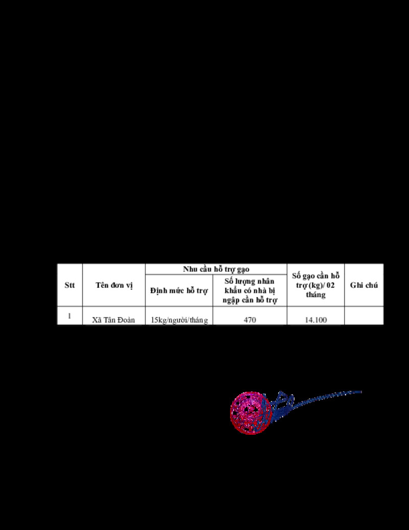 | Tiêu đề văn bản | Báo cáo nhu cầu hỗ trợ gạo để khắc phục hậu quả cơn bão số 10 số 11 và mưa lũ sau bão trên địa bàn xã Tân Đoàn | ||