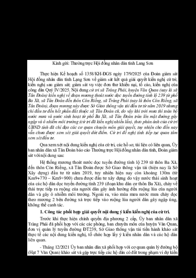 | Tiêu đề văn bản | Báo cáo tình hình, kết quả giải quyết kiến nghị cử tri (Báo cáo Đoàn giám sát HĐND tỉnh theo kế hoạch 1358) | ||