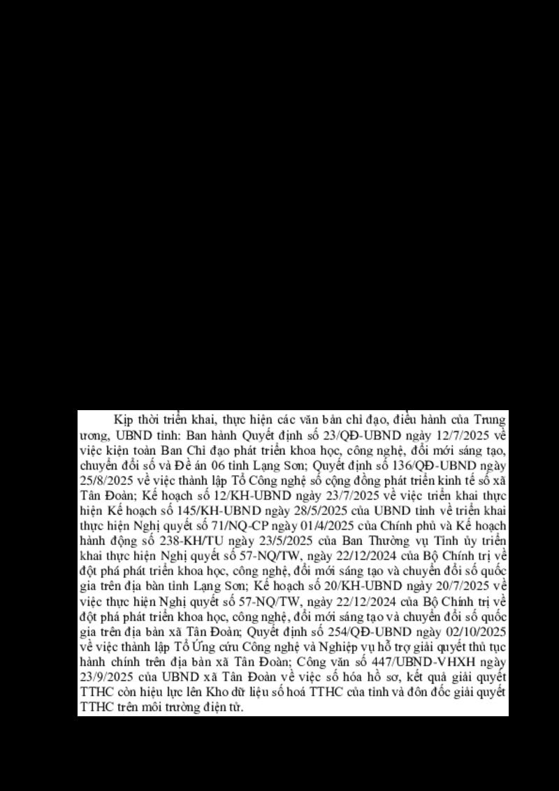 | Tiêu đề văn bản | Báo cáo tình hình, kết quả lãnh đạo, chỉ đạo và tổ chức thực hiện Nghị quyết số 57-NQ/TW của Bộ Chính trị trọng tâm là Thông báo kết luận số 07-TB/CQTTBCĐ, ngày 15/10/2025 của đồng chí Tổng Bí thư Tô Lâm | ||