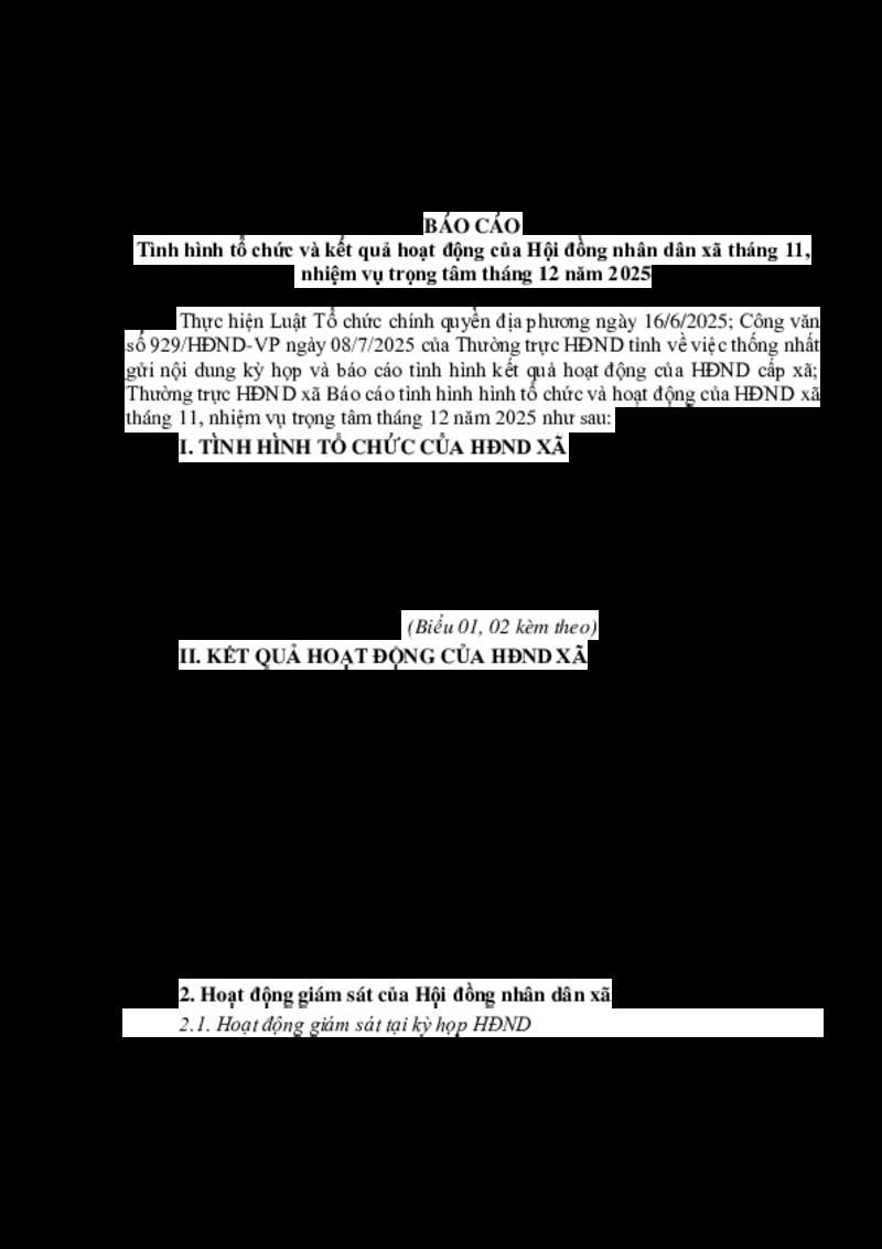 | Tiêu đề văn bản | BÁO CÁO Tình hình tổ chức và kết quả hoạt động của Hội đồng nhân dân xã tháng 11, nhiệm vụ trọng tâm tháng 12 năm 2025 | ||