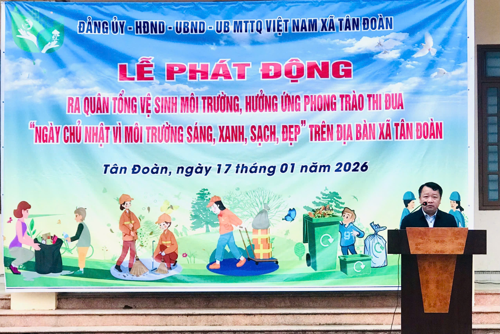 UBND xã Tân Đoàn tổ chức phát động ra quân tổng vệ sinh môi trường, hưởng ứng phong trào thi đua “Ngày Chủ nhật vì môi trường sáng, xanh, sạch, đẹp”