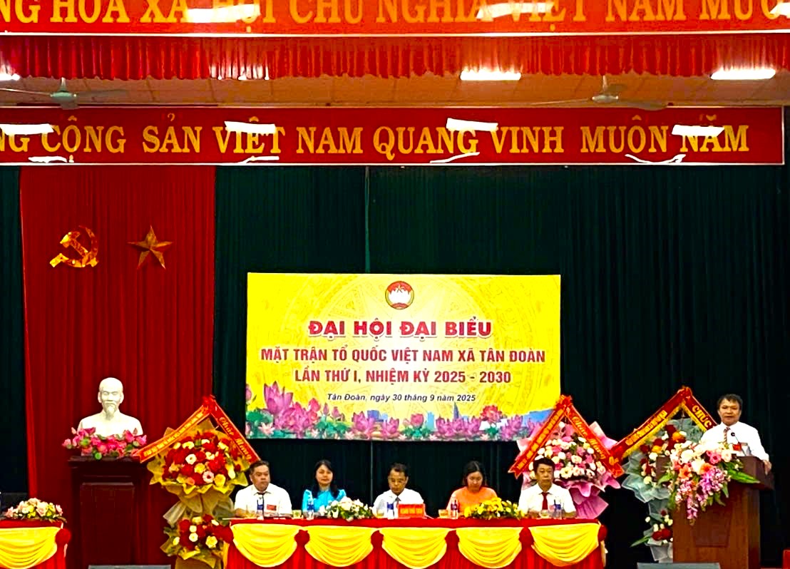 Sáng 30/9/2025, Uỷ ban Mặt trận Tổ quốc (MTTQ) Việt Nam xã Tân Đoàn long trọng tổ chức Phiên chính thức Đại hội Đại biểu MTTQ xã Tân Đoàn lần thứ I, nhiệm kỳ 2025-2030. Đồng chí Hoàng Trung Hiếu, Phó trưởng ban dân chủ, giám sát và phản biện xã hội Uỷ ban MTTQ Việt Nam tỉnh Lạng Sơn dự và chỉ đạo đại hội. Tham dự Đại hội có các đồng chí lãnh đạo Đảng uỷ, HĐND, UBND xã Tân Đoàn và 120 đại biểu tiêu biểu đại diện cho các tầng lớp Nhân dân, các dân tộc, cơ quan, đơn vị trên địa bàn xã.