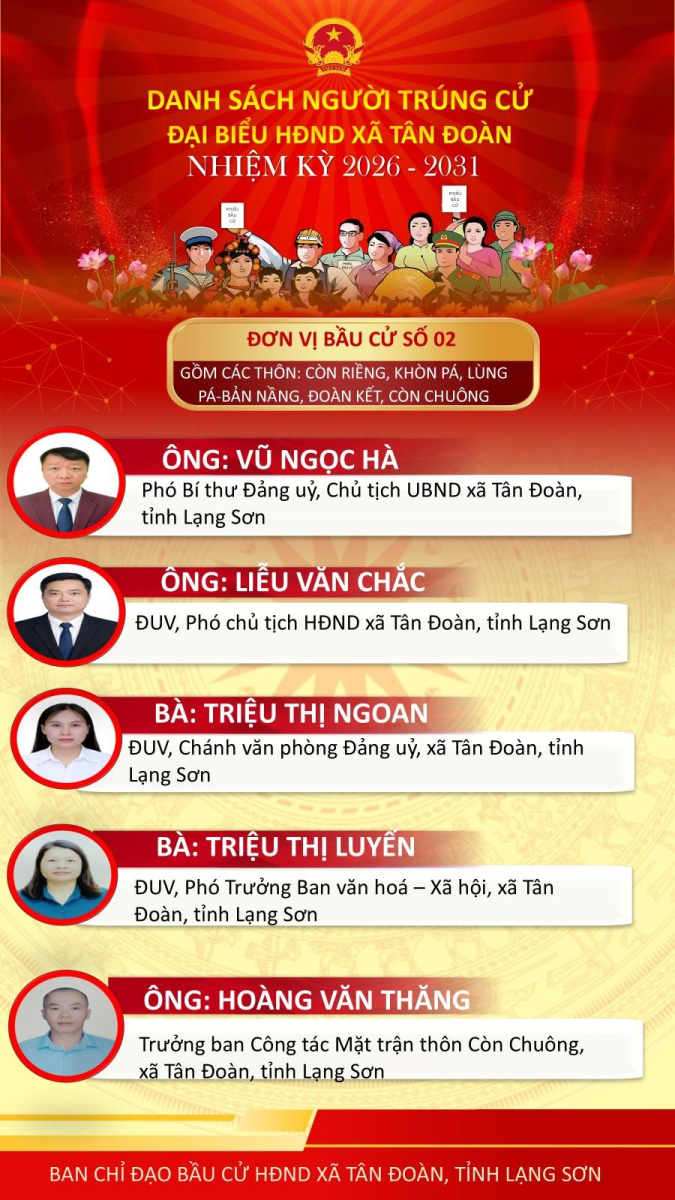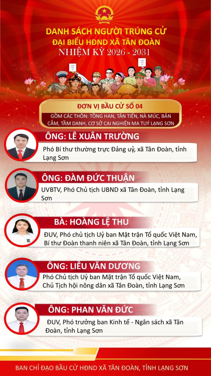 Danh sách người trúng cử đại biểu Hội đồng nhân dân xã Tân Đoàn, tỉnh Lạng Sơn