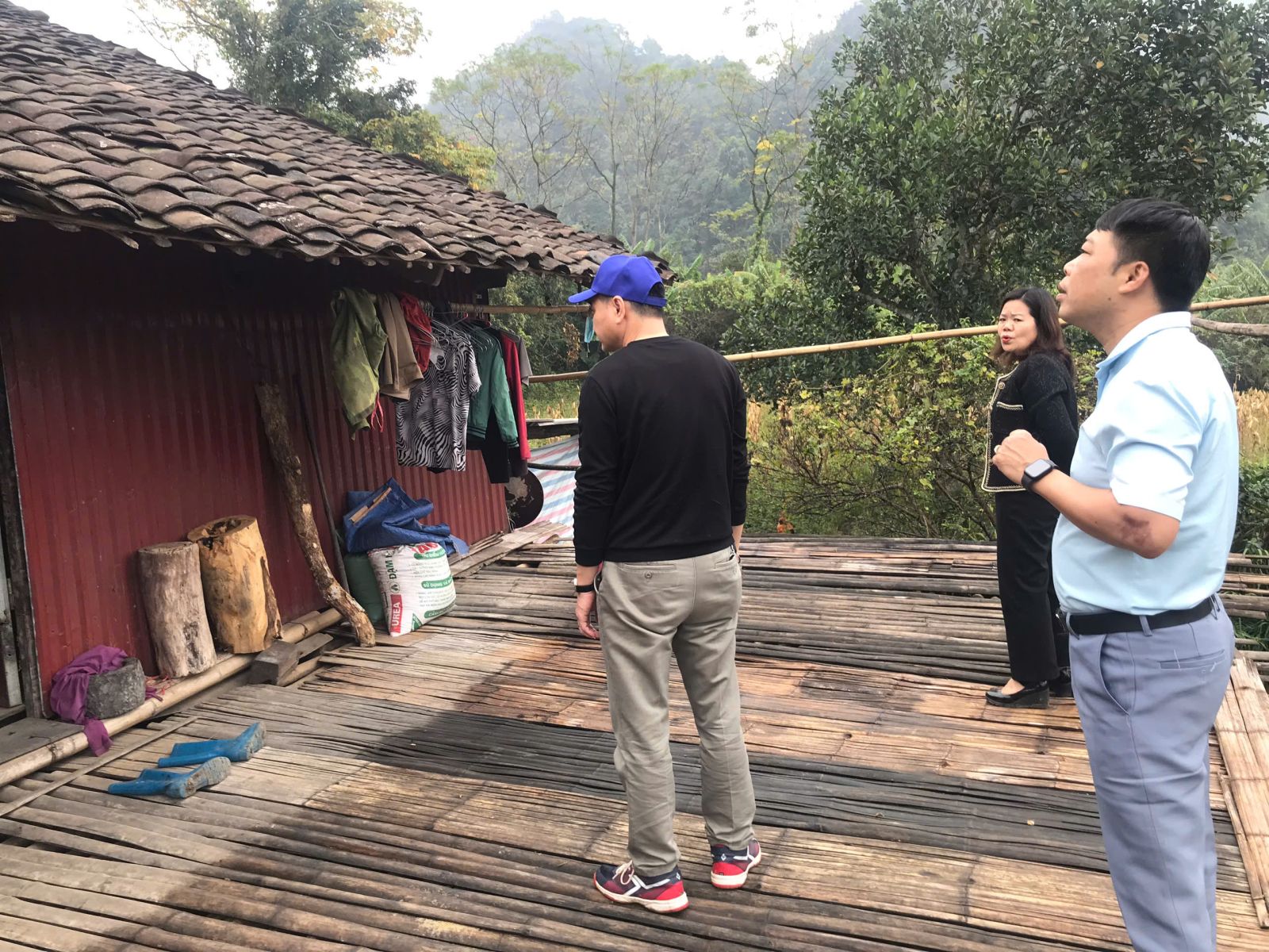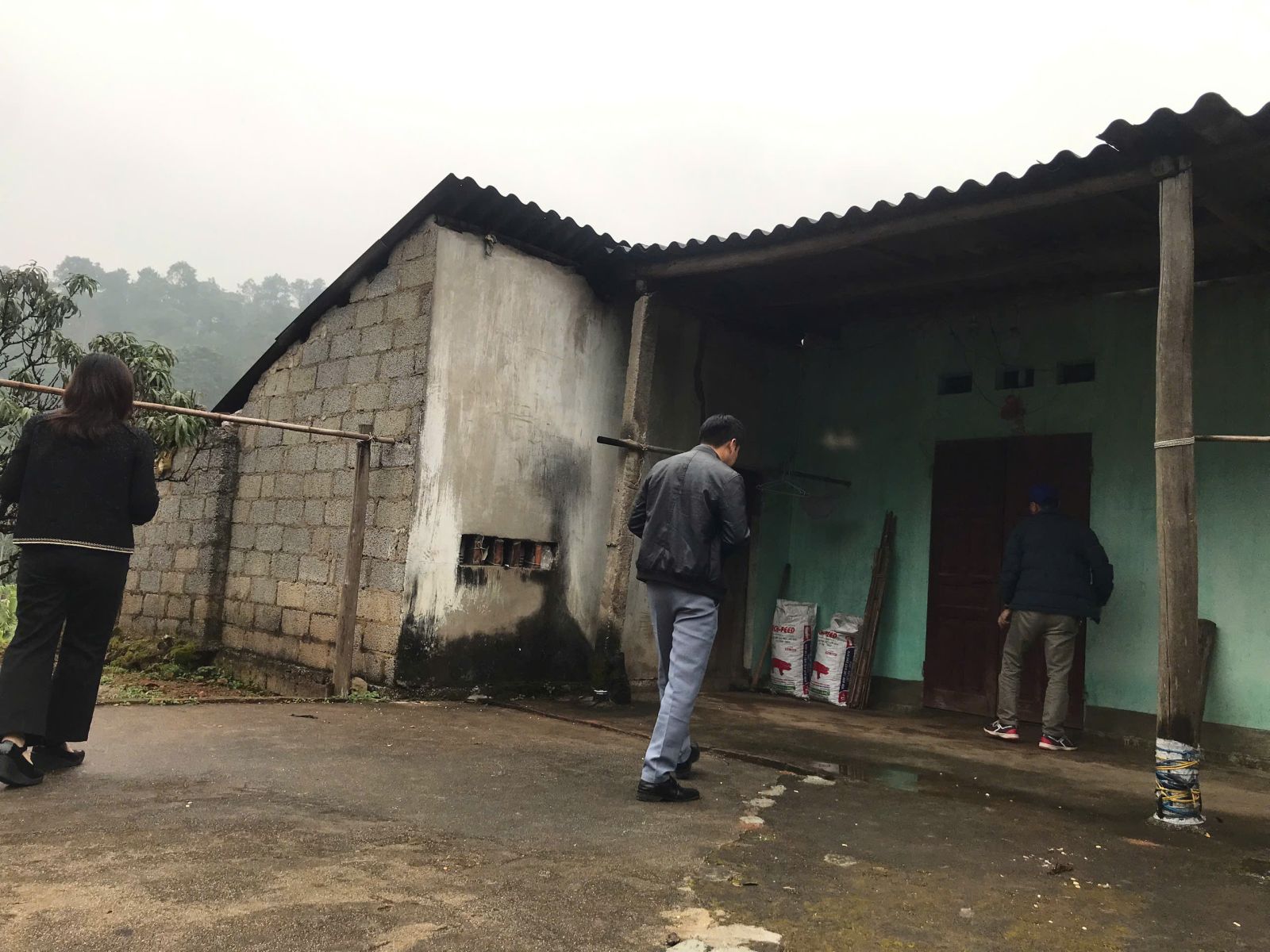 Đồng chí Bí thư Đảng uỷ xã khảo sát nhà tạm, nhà dột nát trên địa bàn xã Tân Đoàn