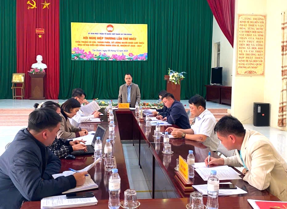 Chiều ngày 8/12/2025, Ban Thường trực Ủy ban MTTQ Việt Nam xã Tân Đoàn đã chủ trì tổ chức Hội nghị hiệp thương lần thứ nhất nhằm thảo thuận về cơ cấu, thành phần và số lượng người được giới thiệu ứng cử đại biểu Hội đồng nhân dân xã nhiệm kỳ 2026-2031.