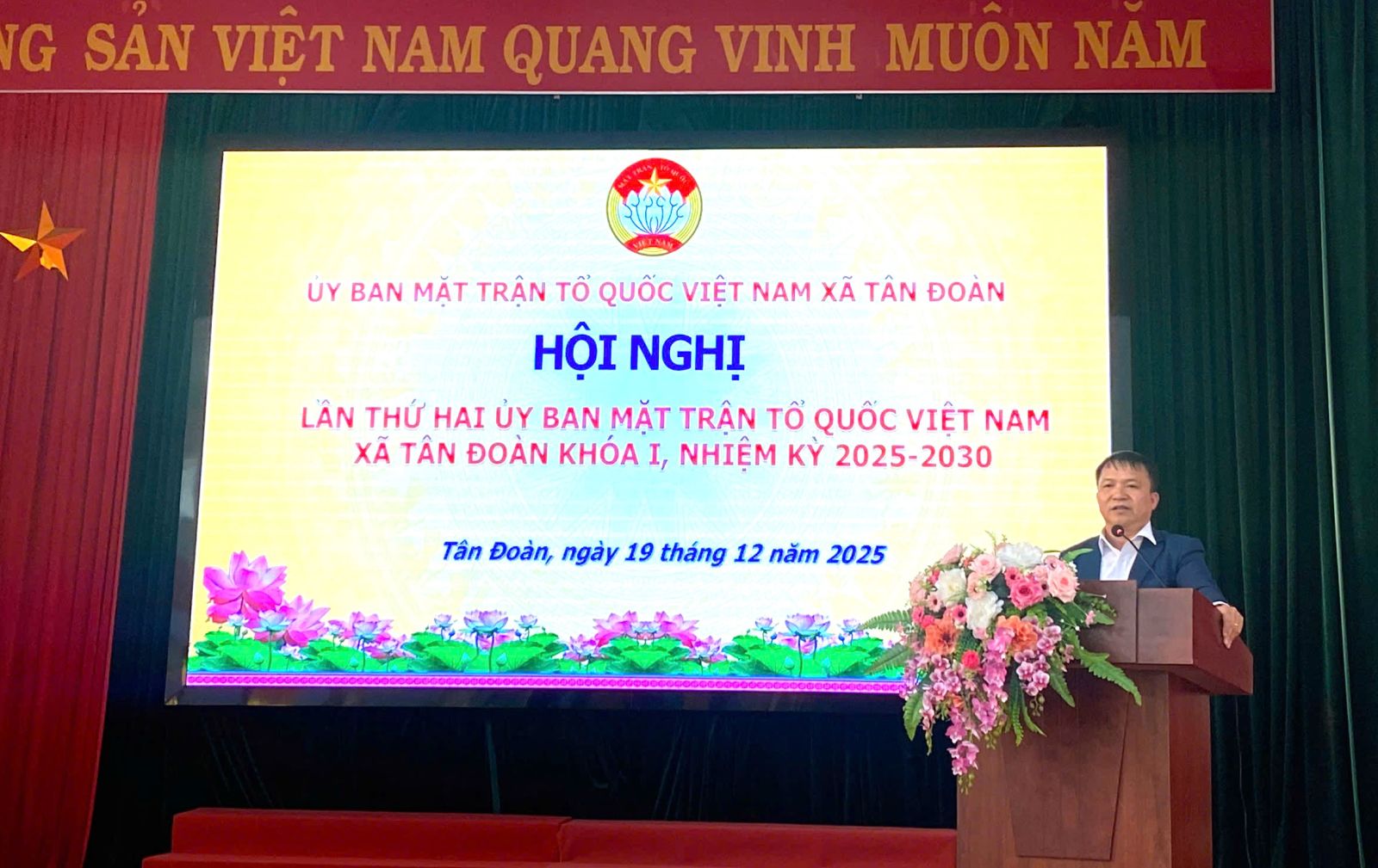 Chiều ngày 19/12/2025, Ban Thường trực MTTQ Việt Nam xã Tân Đoàn tổ chức Hội nghị lần thứ Hai. Dự và chỉ đạo Hội nghị có đồng chí Lê Xuân Trường - Phó Bí thư Thường trực Đảng ủy xã; Hội nghị có sự tham gia của các đồng chí BTV Đảng ủy, BCH Đảng bộ xã, các đồng chí Ủy viên ủy ban MTTQ xã, các đ/c Bí thư chi bộ, trưởng các thôn trên địa bàn xã.