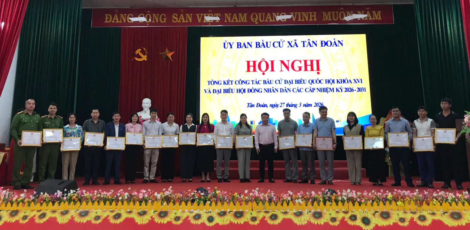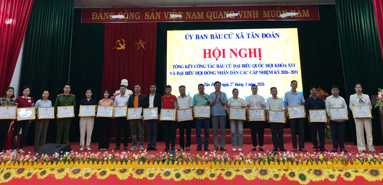 Ngày 27/3/2026 xã Tân Đoàn đã tổ chức Hội nghị tổng kết công tác bầu cử đại biểu Quốc hội khóa XVI và đại biểu Hội đồng nhân dân các cấp nhiệm kỳ 2026 – 2031.