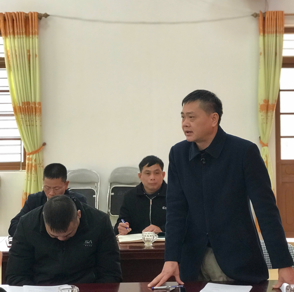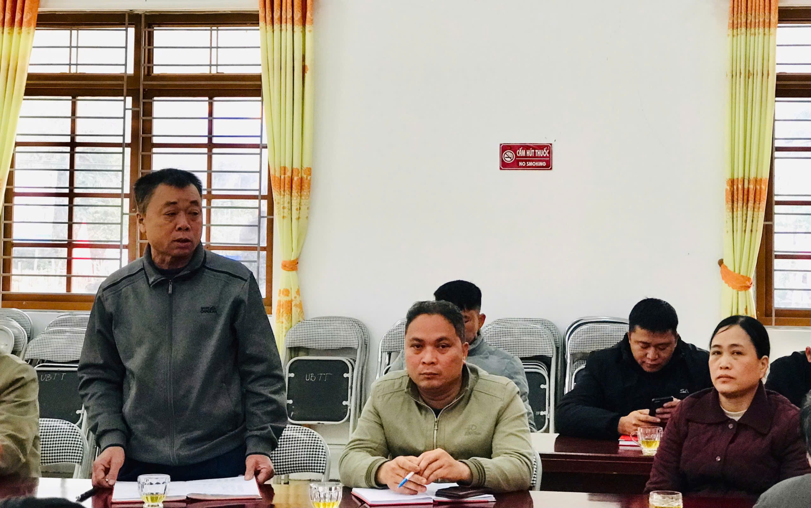 Đồng chí Vũ Ngọc Hà, Chủ tịch UBND xã chủ trì Hội nghị, tham dự Hội nghị có các đồng chí Phó Chủ tịch UBND xã, Trưởng các phòng chuyên môn, các trưởng thông trên địa bàn xã.
