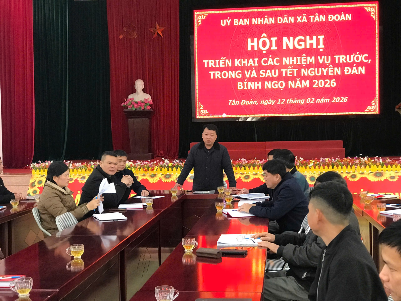 Sáng 12/02/2026, UBND xã Tân Đoàn tổ chức Hội nghị triển khai các nhiệm vụ trước, trong và sau Tết Nguyên đán Bính Ngọ 2026 đến các thôn trên địa bàn xã.