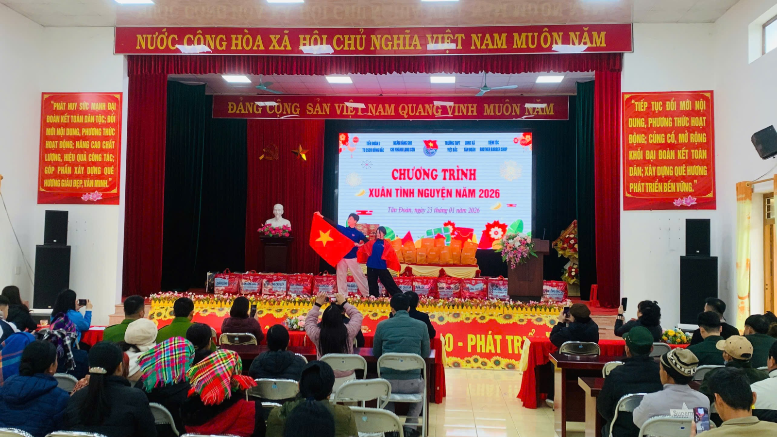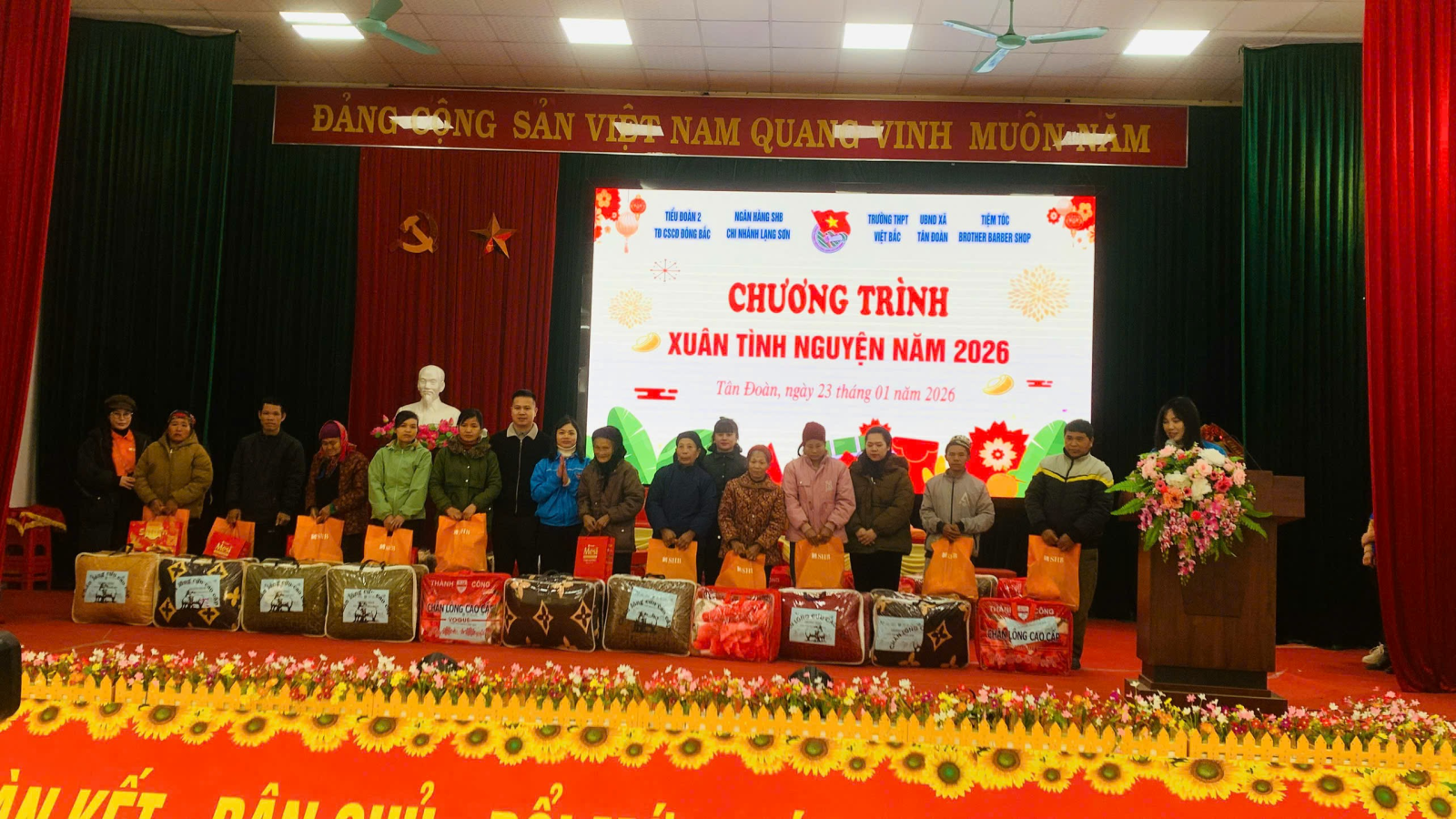 Sáng ngày 23/01/2026, tại Hội trường Ủy ban nhân dân xã Tân Đoàn, Chương trình “Xuân tình nguyện – Tết Nhân ái” Xuân Bính Ngọ năm 2026 đã được tổ chức trong không khí ấm áp, nghĩa tình, thu hút sự tham gia đông đảo của Nhân dân địa phương. Chương trình do Đoàn Trường THPT Việt Bắc phối hợp với UBND xã Tân Đoàn thực hiện, nhằm chăm lo, hỗ trợ các hộ gia đình có hoàn cảnh khó khăn trên địa bàn xã nhân dịp Tết đến, Xuân về.