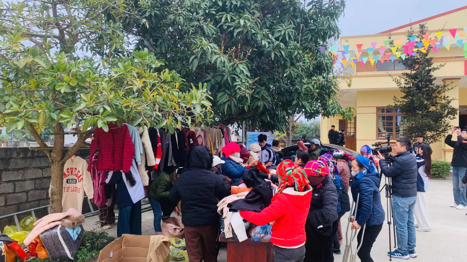 Bên cạnh hoạt động trao quà, Gian hàng miễn phí 0 đồng với các mặt hàng quần áo đã thu hút đông đảo người dân đến tham gia. Những sản phẩm được sắp xếp gọn gàng, phù hợp với nhiều lứa tuổi, tạo điều kiện để Nhân dân lựa chọn theo nhu cầu. Ngoài ra, hoạt động cắt tóc miễn phí dành cho nam giới cũng nhận được sự hưởng ứng tích cực, mang lại niềm vui và sự hài lòng cho người dân địa phương.