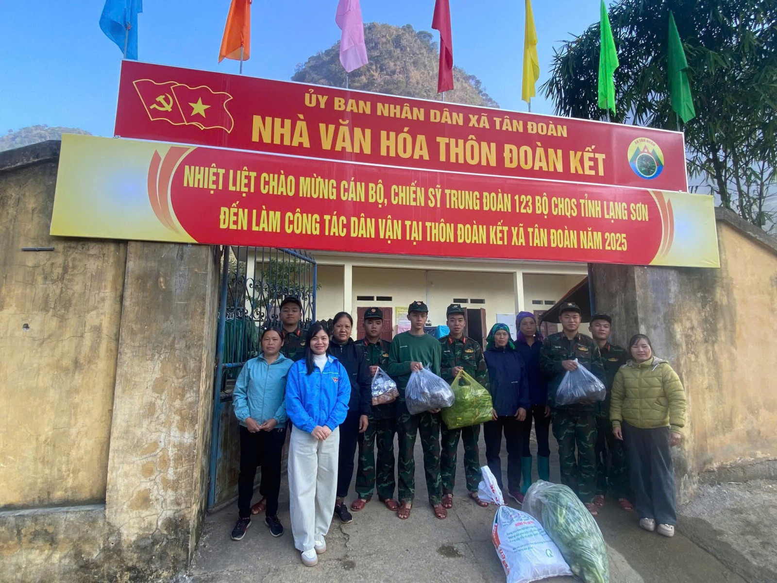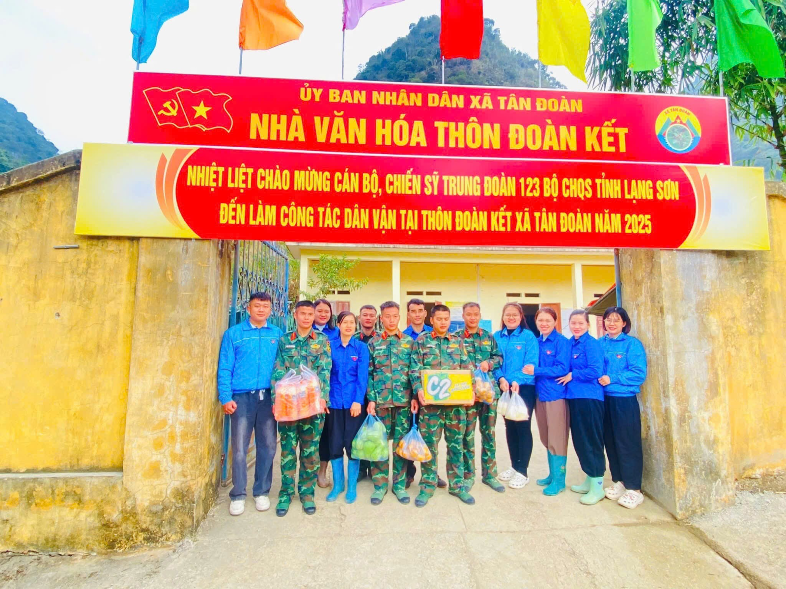 Thực hiện Kế hoạch phối hợp công tác dân vận cùng với Trung đoàn 123 của UBND xã Tân Đoàn ; Chương trình tình nguyện mùa đông và xuân tình nguyện năm 2025 của BCH Đoàn xã, trong 2 ngày 20/12/2025 và 21/12/2025, ĐVTN trên địa bàn xã tham gia các hoạt động thắm tình quân dân cùng với các chiến sĩ Trung đoàn 123, Bộ CHQS Tỉnh Lạng Sơn. Các ĐVTN hỗ trợ cùng các chiến sĩ dân vận khắc phục sau bão, chặt tre, khơi thông dòng chảy tại xóm Lùng Thúm, thôn Đoàn Kết. Bên cạnh công tác dân vận ĐVTN còn tổ chức thăm hỏi, động viên và trao tặng những phần quà ý nghĩa đến các chiến sĩ Trung đoàn 123. Những món quà tuy giản dị nhưng chứa đựng tình cảm, sự quan tâm và lòng biết ơn sâu sắc của tuổi trẻ đối với những người lính đang ngày đêm rèn luyện, sẵn sàng bảo vệ Tổ quốc.