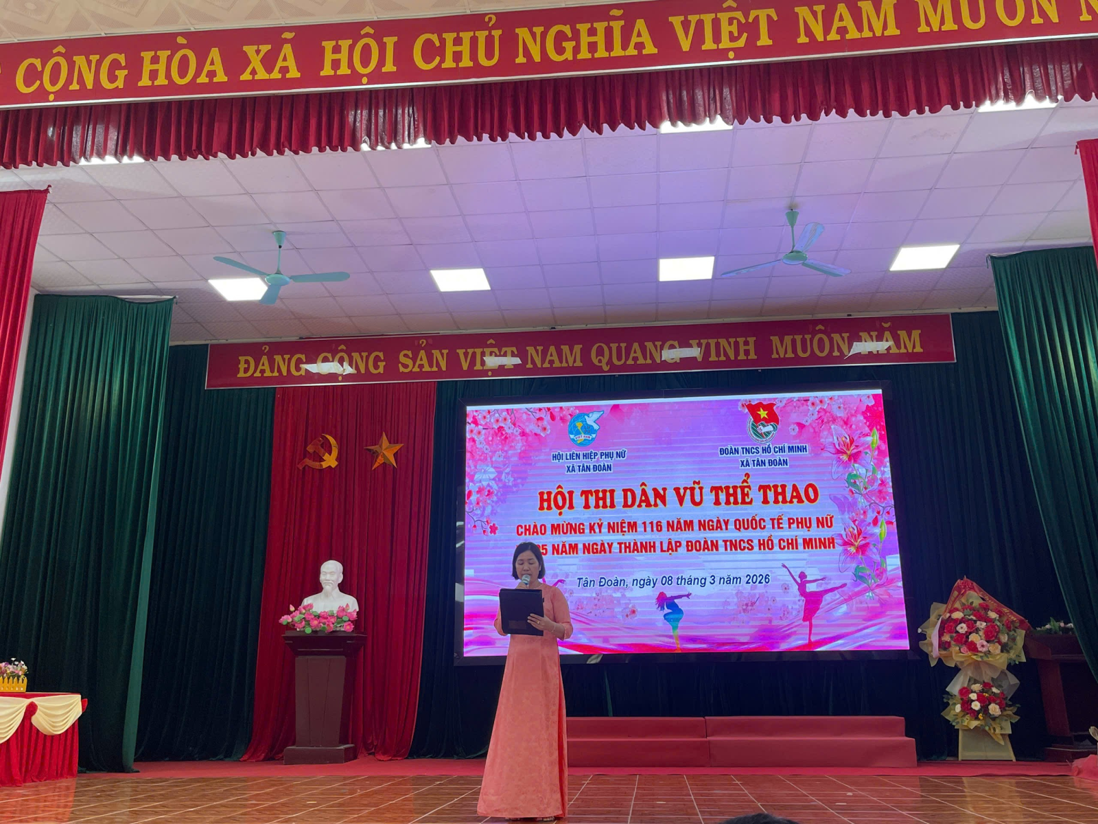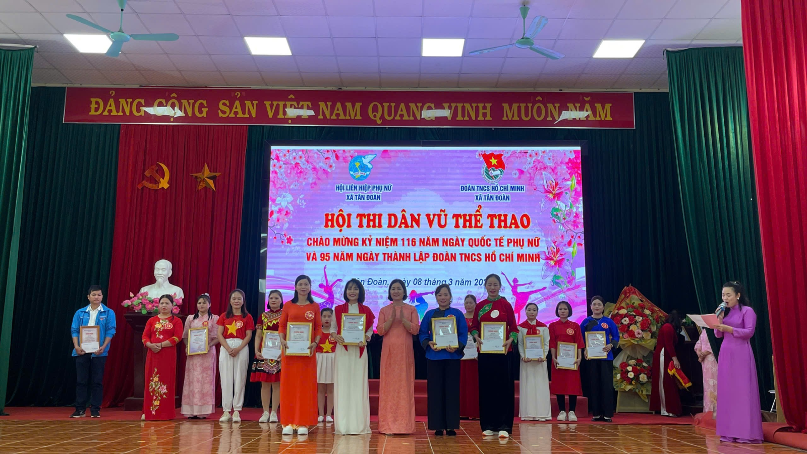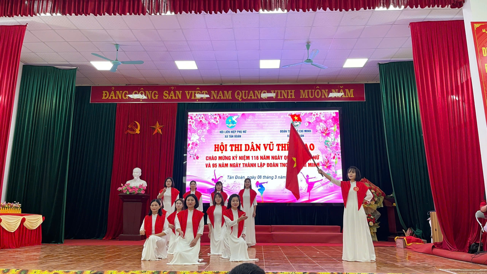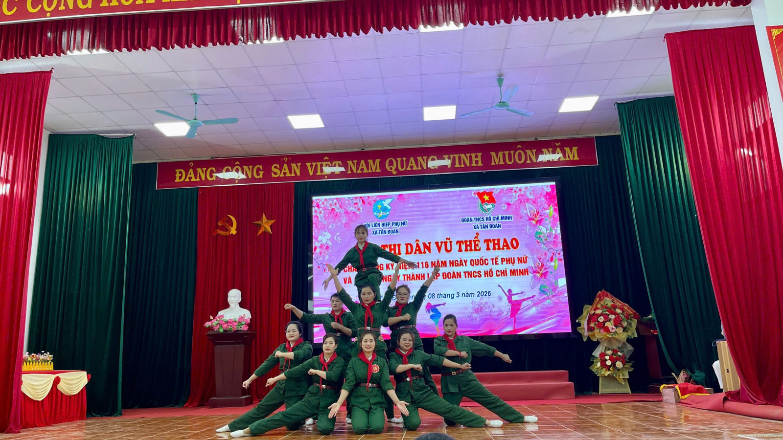 Thiết thực lập thành tích chào mừng Ngày bầu cử đại biểu Quốc hội khóa XVI và đại biểu HĐND các cấp nhiệm kỳ 2026 – 2031, kỷ niệm 116 năm Ngày Quốc tế Phụ nữ (08/3/1910 – 08/3/2026) và 95 năm Ngày thành lập Đoàn TNCS Hồ Chí Minh (26/3/1931 – 26/3/2026), đồng thời nhằm tạo sân chơi lành mạnh, bổ ích, góp phần nâng cao đời sống văn hóa tinh thần, rèn luyện sức khỏe và tăng cường sự gắn kết trong cán bộ, hội viên, đoàn viên và thiếu nhi trên địa bàn, ngày 08/3/2026, Hội Liên hiệp Phụ nữ xã Tân Đoàn phối hợp với Đoàn TNCS Hồ Chí Minh xã Tân Đoàn đã tổ chức Hội thi dân vũ năm 2026 với chủ đề “Đoàn kết – Khỏe – Đẹp – Sáng tạo”.
