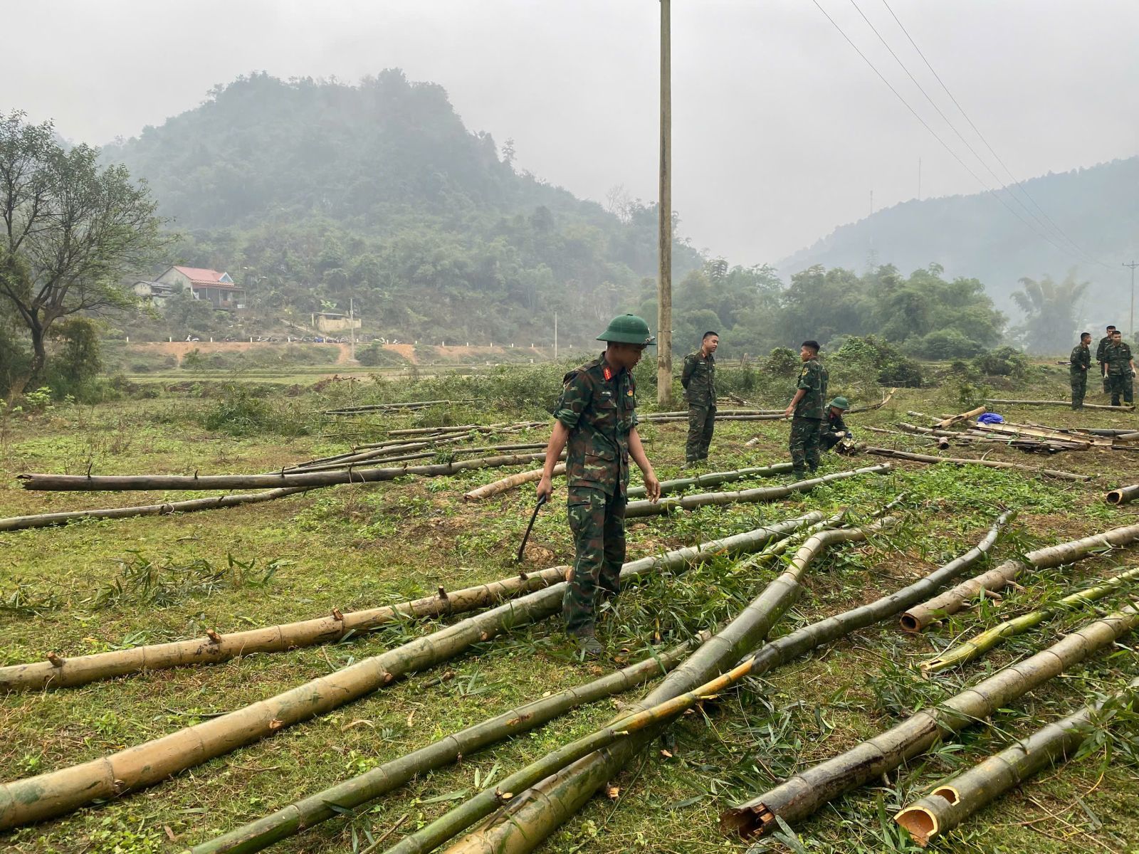 Uỷ ban nhân dân xã Tân Đoàn phối hợp Trung đoàn 123, Bộ chỉ huy quân sự tỉnh Lạng Sơn thực hiện công tác dân vận tại Thôn Đoàn Kết, xã Tân Đoàn.