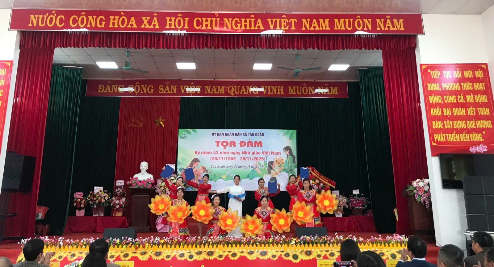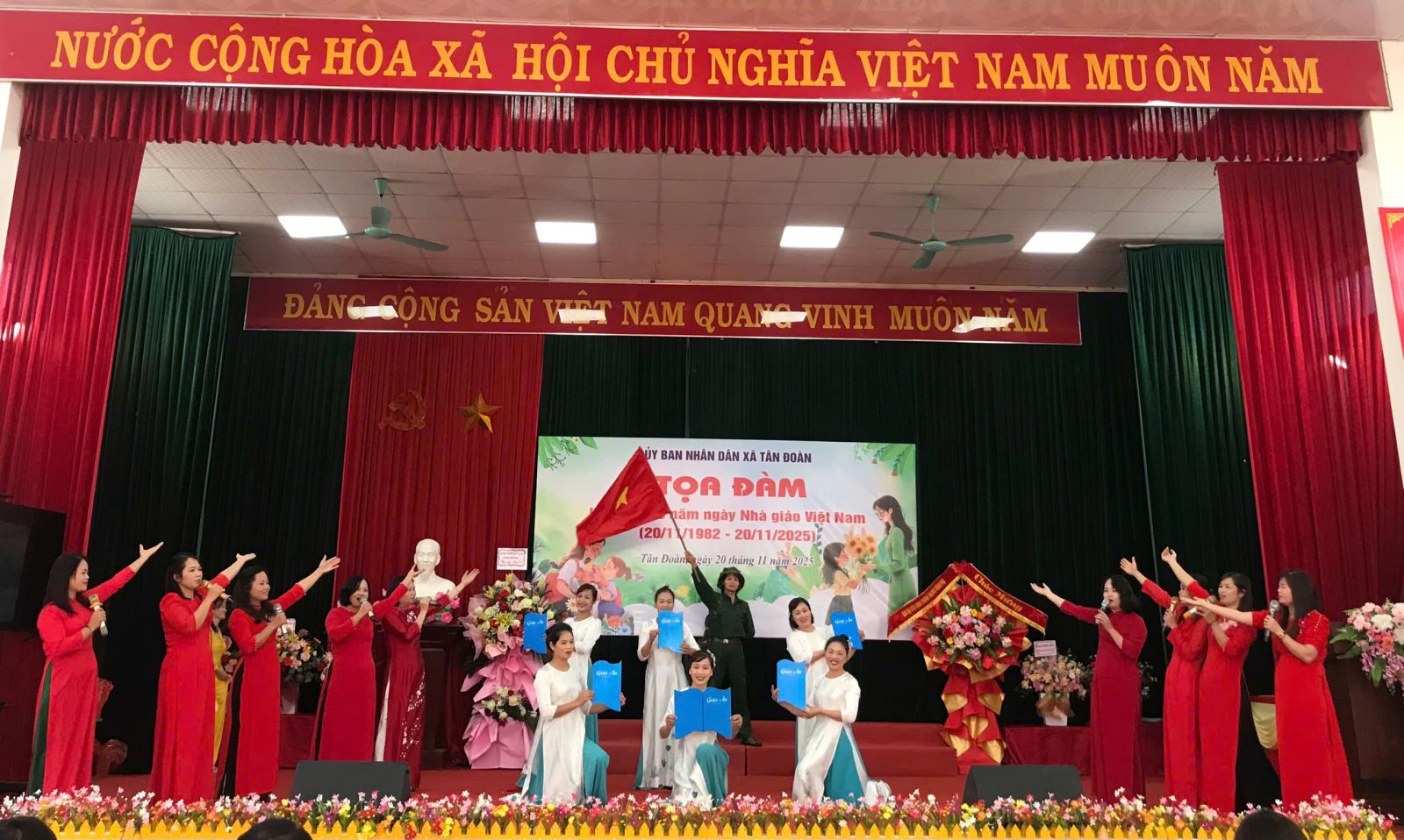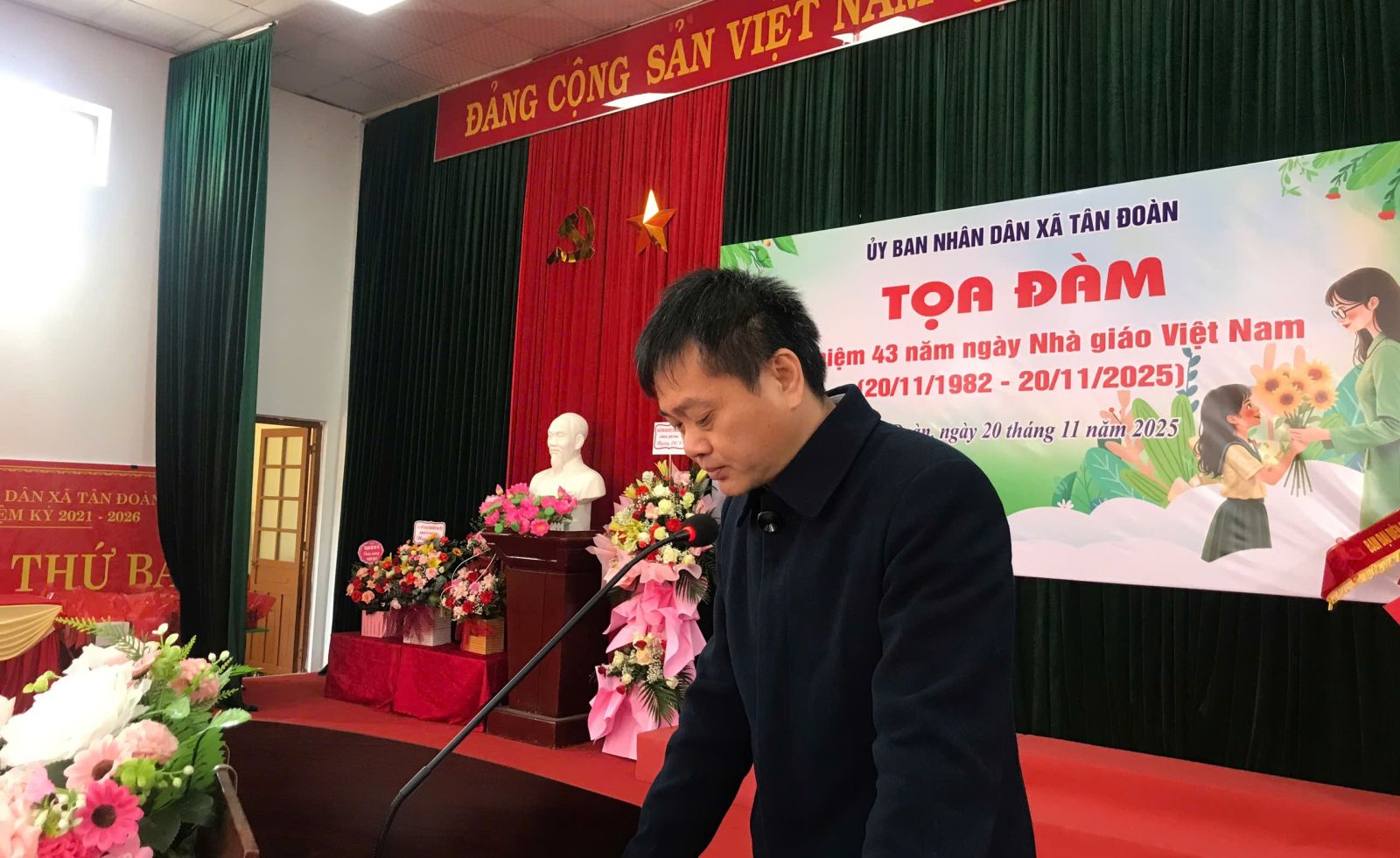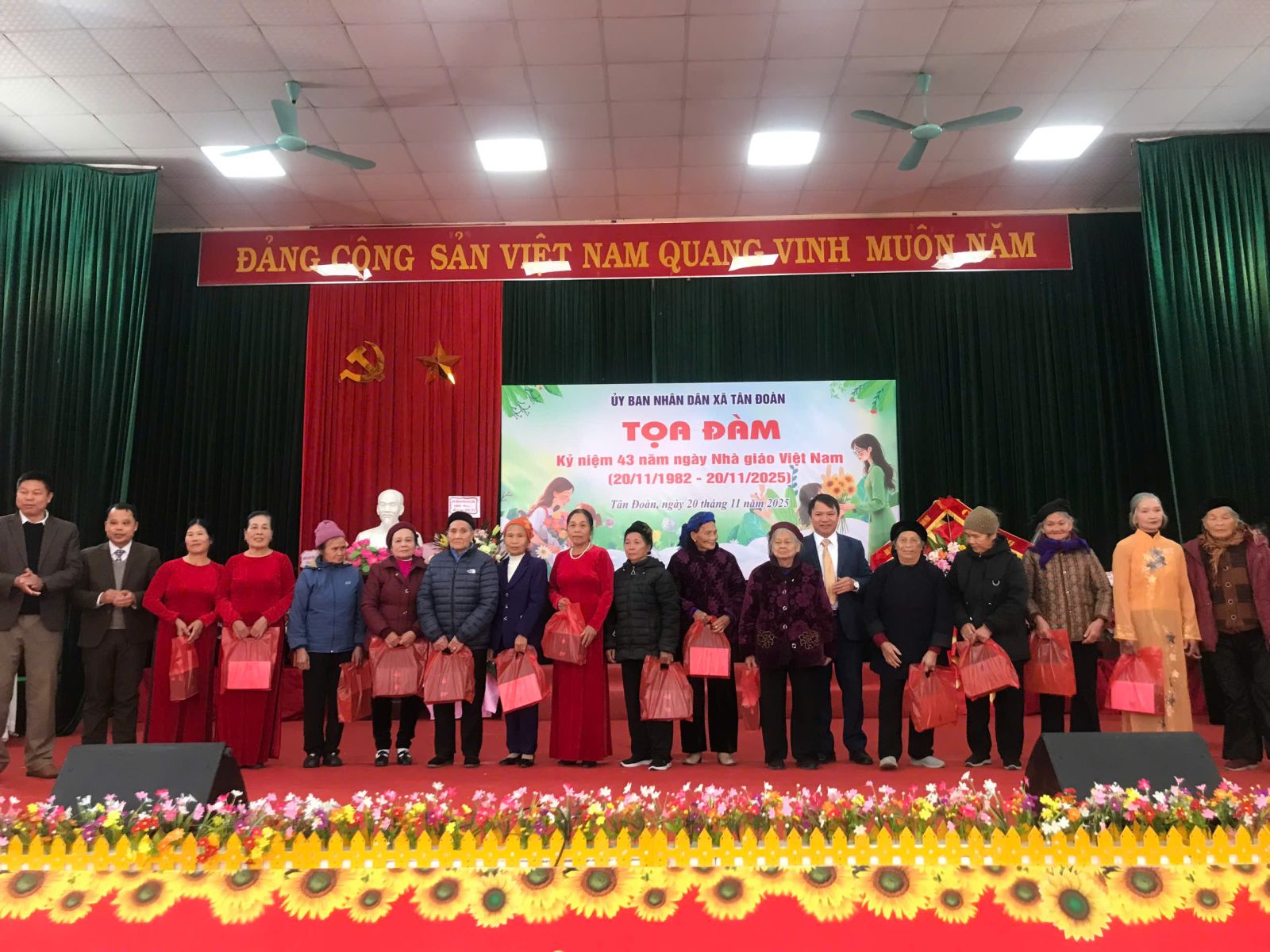 Sáng ngày 20/11, UBND xã Tân Đoàn long trọng tổ chức tọa đàm kỷ niệm Ngày Nhà giáo Việt Nam nhằm tri ân những đóng góp của đội ngũ cán bộ quản lý, giáo viên trên địa bàn xã. Tham dự chương trình có đại diện Sở Nội vụ; lãnh đạo Đảng ủy, HĐND, UBND, Ủy ban MTTQ Việt Nam xã; các ban, ngành, đoàn thể cùng toàn thể giáo viên, nhân viên 07 Trường học đang hoạt động trên địa bàn xã Tân Đoàn và đội ngũ cán bộ, giáo viên đã nghỉ hưu.