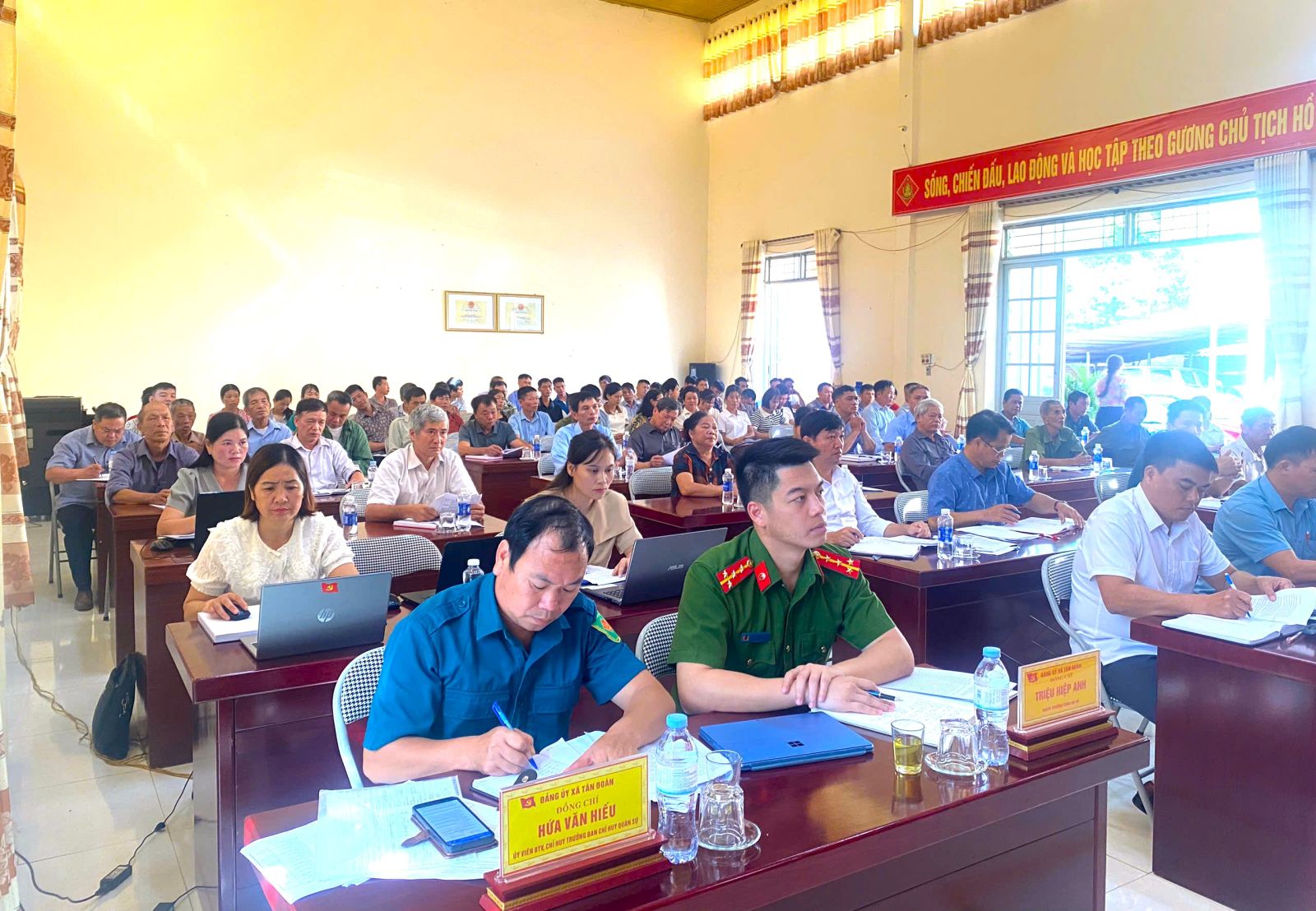 Đồng chí Hứa Phong Lan, Bí thư Đảng uỷ, Chủ tịch HĐND xã; đồng chí Vũ Ngọc Hà, Phó Bí thư Đảng uỷ, Chủ tịch UBND xã đồng chủ trì Hội nghị. Tham dự Hội nghị có các đồng chí Uỷ viên Ban Thường vụ Đảng uỷ xã, các đồng chí Ủy viên Ban Chấp hành Đảng bộ xã, lãnh đạo các cơ quan tham mưu, giúp việc của Đảng, Chủ tịch, Phó chủ tịch Ủy ban MTTQ Việt Nam xã, lãnh đạo các phòng chuyên môn, đơn vị thuộc UBND xã, đại diện lãnh đạo công xã, các đồng chí Bí thư chi bộ, Trưởng thôn, Trưởng ban công tác mặt trận thôn và 63 đại biểu đại diện Nhân dân 21 thôn trên địa bàn xã tham dự.