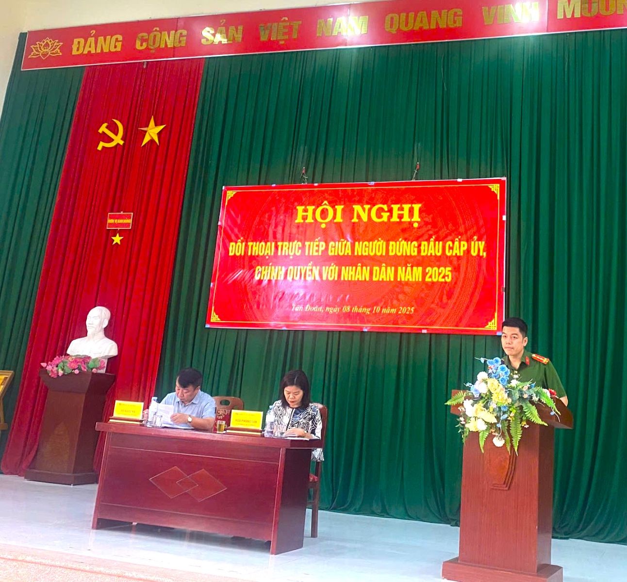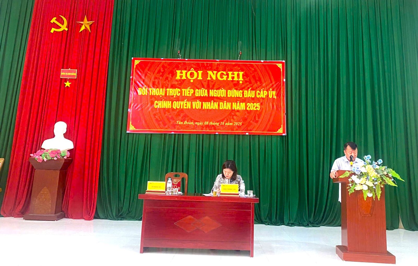 Thực hiện Kế hoạch số 14-KH/ĐU ngày 23/9/2025 của Đảng uỷ xã Tân Đoàn, sáng ngày 8/10/2025, Đảng uỷ, UBND xã Tân Đoàn tổ chức Hội nghị đôi thoại trực tiếp giữa người đứng đầu cấp uý, chính quyền xã với Nhân dân năm 2025.