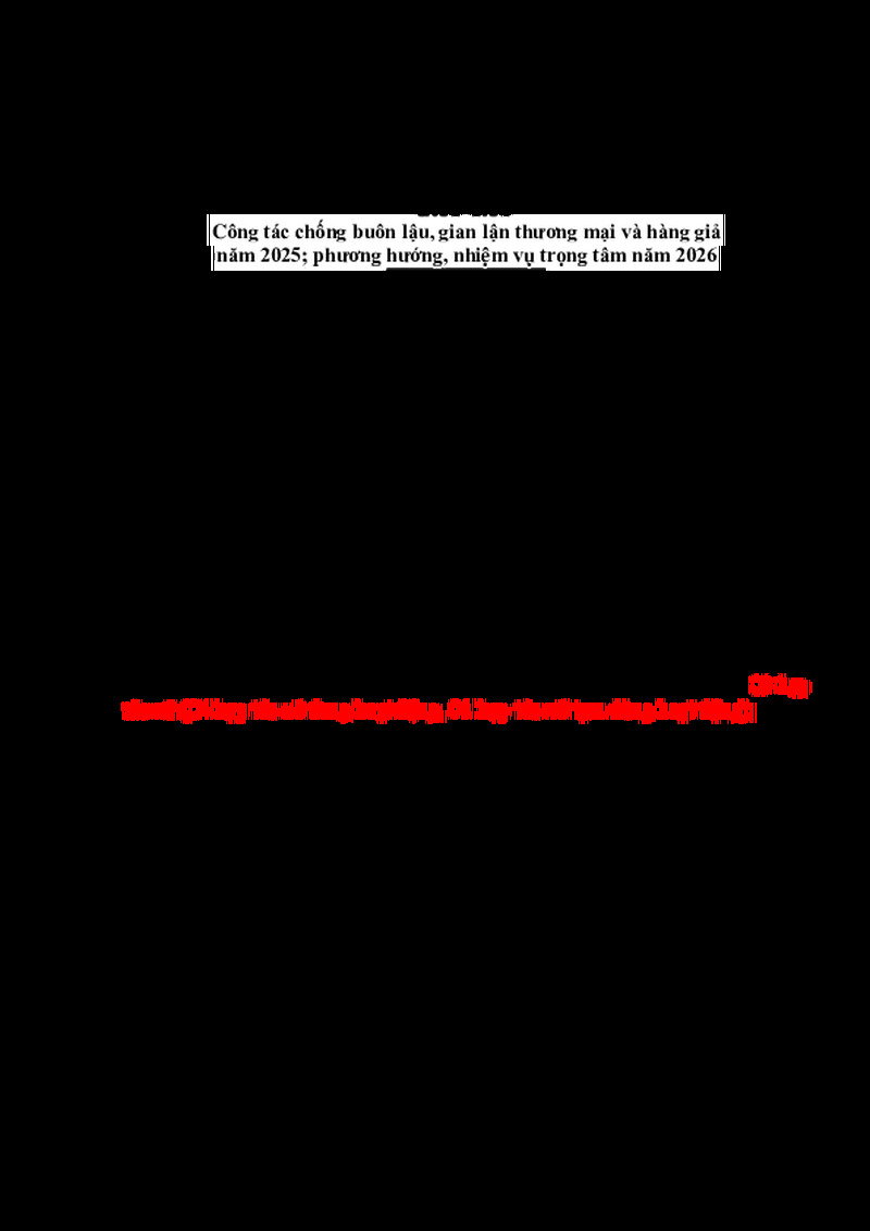 | Tiêu đề văn bản | BÁO CÁO Công tác chống buôn lậu buôn lậu, gian lận thương mại và hàng giả năm 2025, phương hướng nhiệm vụ trọng tâm năm 2026 | ||
