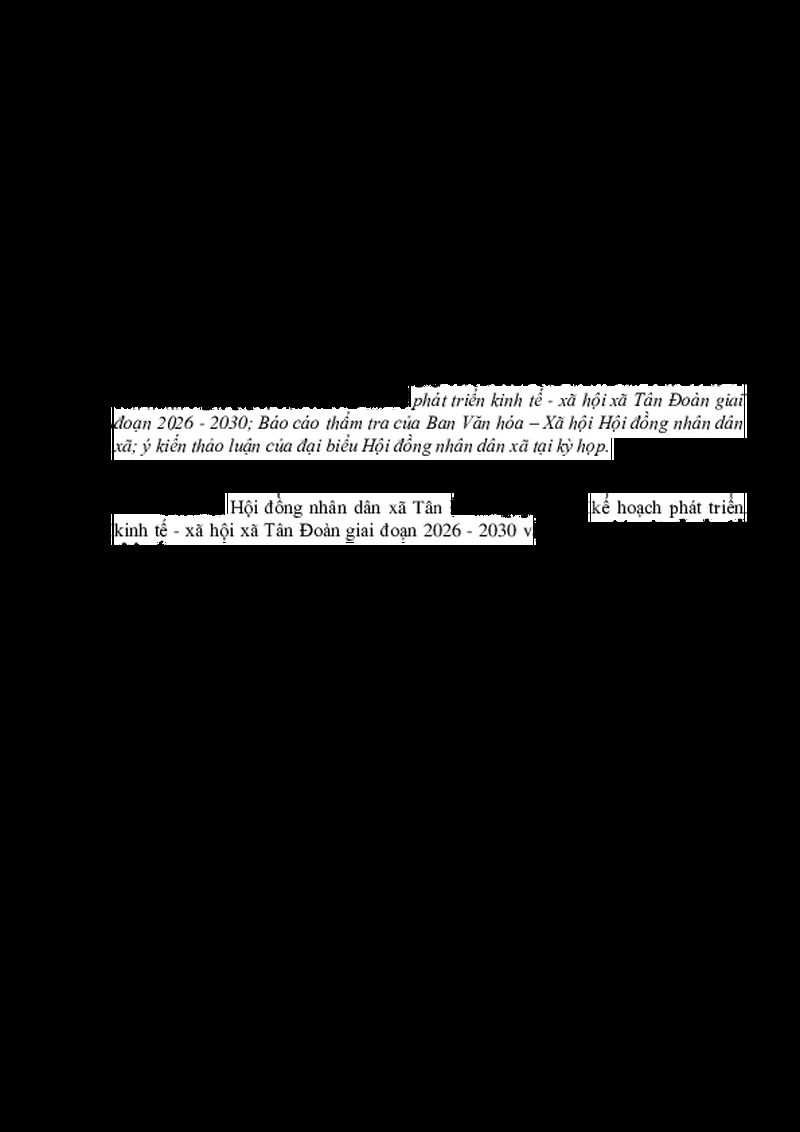 Tiêu đề văn bản Nghị quyết về kế hoạch phát triển kinh tế xã hội xã Tân Đoàn giai đoạn 2026-2030